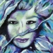 Portret van een vrouw met een melancholische blik. Alleen de sterke contrasten zijn zichtbaar op een schilderachtige, grunge achtergrond. De tinten zijn donker en doorleefd. De kleur neigt via groen, groenblauw, turquoise naar zwart. Je kunt speculeren wat er in het meisje omgaat, denkt ze aan een onmogelijke liefde, heeft ze net een persoonlijk verlies geleden, wat houdt haar bezig? Welke emoties spelen er in dit serene gelaat?