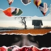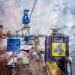 Ik heb met druktechnieken eerst zelf het papier bewerkt en dit gebruikt voor de collage.